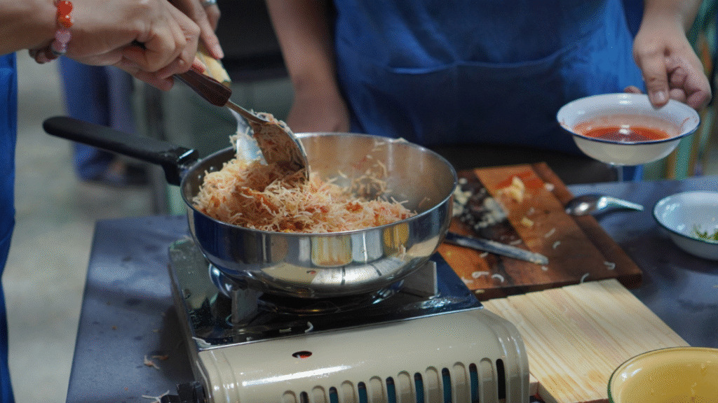 3. Rinse and Dry. Heat the pan on low heat to evaporate moisture.